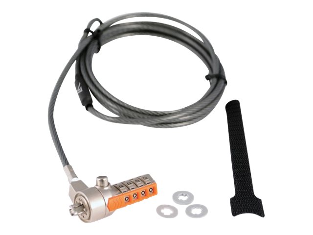 IMPORTANT: This Range/Series overview section describes the range of which this product belongs. Features of different versions might be mentioned and may not apply to the specific product on this page. Please view Specs for specification of product.The V7 combination security lock is designed for technology products that have a security lock slot and fits practically all notebook computers manufactured today. The security lock provides a simple and effective way to secure notebooks, desktops, monitors and projectors. The push-to-lock function and 90-degree cable design insures easy operation. The lock head tumbler swivels and rotates making it easy to read the numbers when setting the up to 10,000 unique combinations.