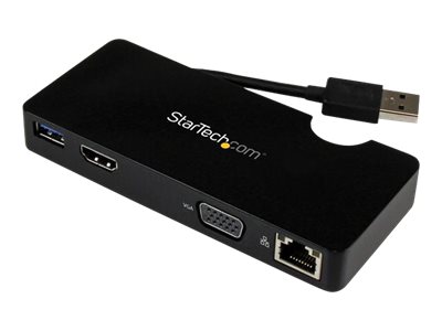 IMPORTANT: This Range/Series overview section describes the range of which this product belongs. Features of different versions might be mentioned and may not apply to the specific product on this page. Please view Specs for specification of product.Create a mobile workstation using your Ultrabook or laptop USB 3.0 port via this portable USB 3.0 mini dock. The travel docking station for laptops lets you transform your laptop or Ultrabook into a mobile workstation. It adds HDMI or VGA video output, a USB 3.0 hub port, and a Gigabit Ethernet RJ45 port, through a single USB 3.0 host connection. The travel-friendly dock helps you overcome the port limitations of modern mobile computers, making it ideal for your laptop, Microsoft Surface Pro 4, Surface Pro 3, Surface 3, Surface Pro 2 or Surface Book.