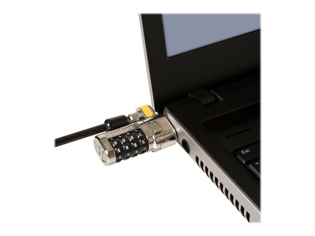 IMPORTANT: This Range/Series overview section describes the range of which this product belongs. Features of different versions might be mentioned and may not apply to the specific product on this page. Please view Specs for specification of product.The Kensington ClickSafe Combination Laptop Lock is a stocked master access solution designed for effortless protection of computers and your business's most important data. Locks attach to hardware in a single step. Just one click and it's secure. There's no need for employees to insert a key or follow multiple steps. ClickSafe Combination Laptop Locks combine a cable made from superior materials to deliver the strongest security available in a cable lock.
